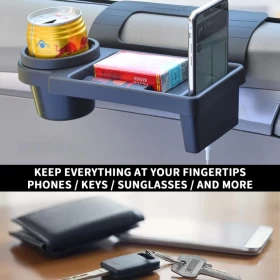 حافظ على ترتيب سيارتك بسهولة مع منظم التخزين متعدد الوظائف لنافذة السيارة. يتم تثبيته بسهولة على نافذة أو إطار باب السيارة ويوفر سطحًا عمليًا لوضع الطعام، المشروبات، الهاتف، والأغراض الصغيرة — مثالي للرحلات والسفر والاستخدام اليومي.