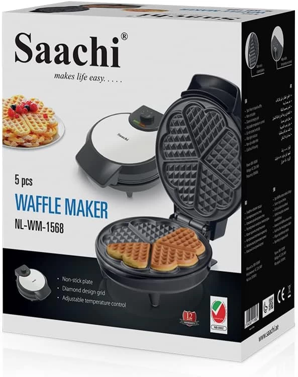 🧇 صانعة الوافل القلبية 5 قطع من Saachi موديل NL-WM-1568