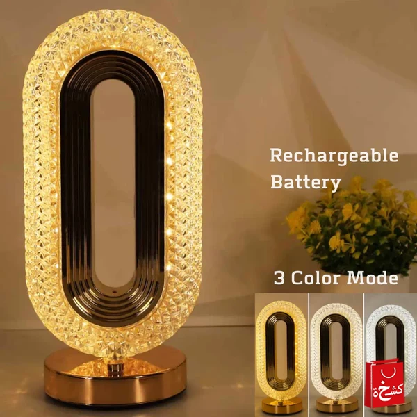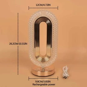 مصباح طاولة كريستال بيضاوي فاخر – قابل للشحن USB بإضاءة LED أنيقة