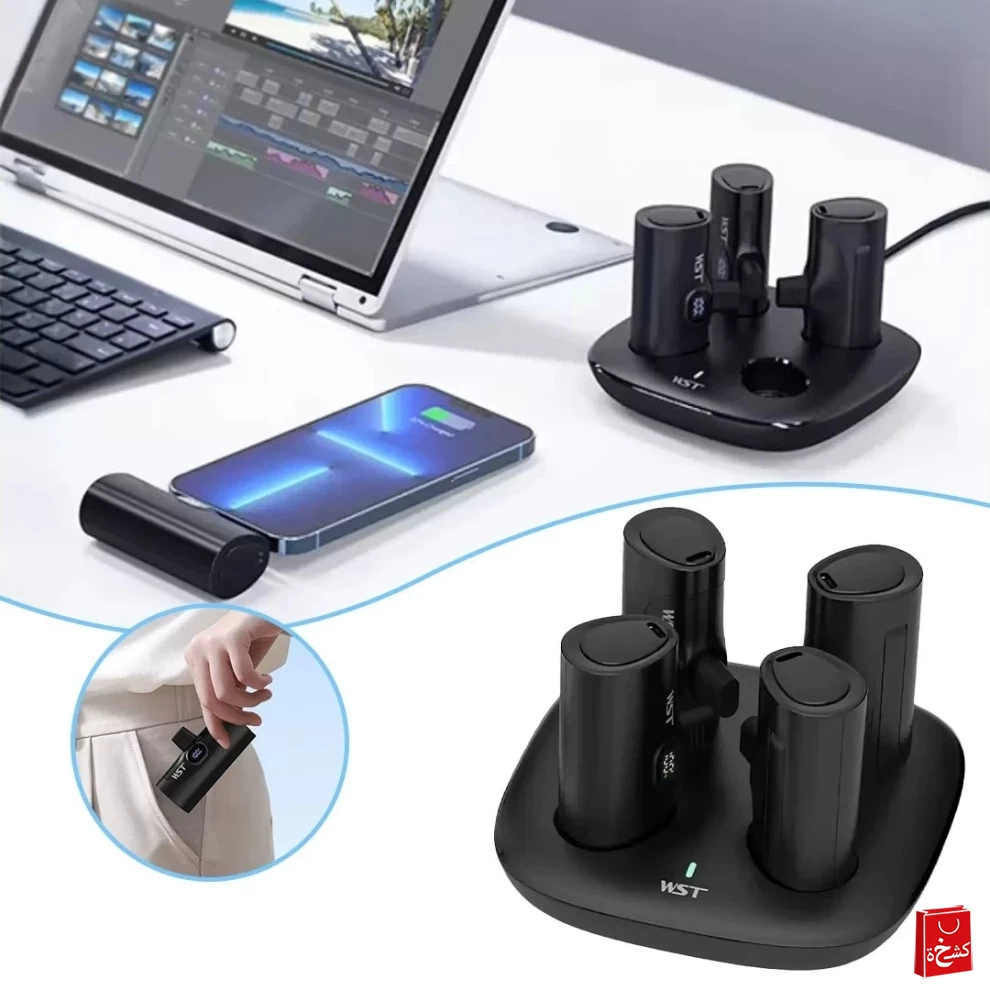 محطة الشحن WST 4-in-1 Docking Power Bank Station هي حل ذكي لمشاركة الطاقة، حيث تأتي مع 4 باور بانك منفصلة بسعة 5000mAh لكل واحدة داخل قاعدة شحن واحدة أنيقة. يمكن للمستخدمين أخذ أي باور بانك بسهولة أثناء التنقل وإعادته إلى القاعدة لإعادة الشحن.