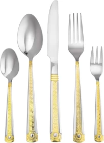 أضف لمسة من الفخامة إلى مائدة الطعام مع طقم الملاعق والشوك والسكاكين الفاخر Italian Collection “Antique Greek” المكون من 72 قطعة. يتميز بتصميم كلاسيكي مستوحى من الزخارف اليونانية العتيقة مع تشطيب فضي أنيق يضفي جمالاً مميزاً على مائدة الطعام.