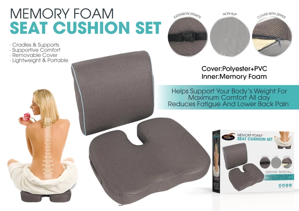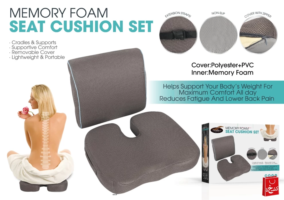 توفر وسائد جلوس من رغوة الذاكرة راحة ودعم طوال اليوم للظهر والوركين والوضعية. مصممة برغوة ذاكرة عالية الجودة وغطاء غير قابل للانزلاق مع سحاب قابل للإزالة، تساعد هذه الوسائد على تقليل التعب، تخفيف الضغط، وتحسين وضعية الجلوس. مثالية للاستخدام على الكراسي المكتبية، مقاعد السيارات، الكراسي المتحركة، والمنازل، مع أحزمة تثبيت إضافية لتثبيتها بسهولة.