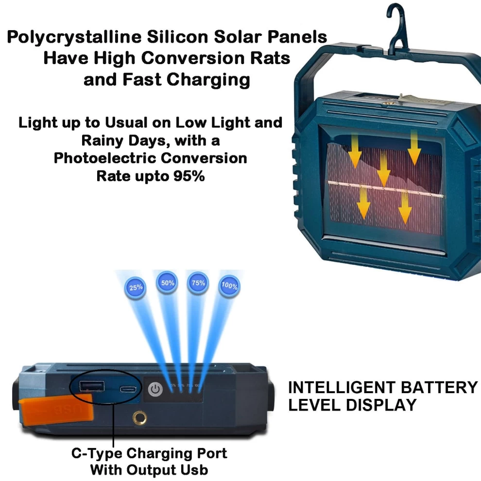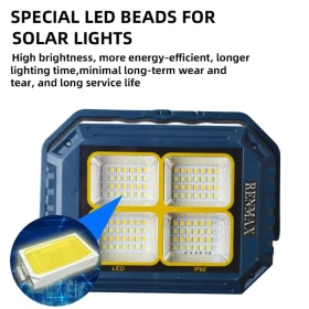 أضئ أي مكان بسهولة مع كشاف LED شمسي 30 واط المصمم ليكون محمول، بدون أسلاك، ومقاوم لجميع الظروف الجوية. يتميز بـ أوضاع إضاءة متعددة (أبيض، أبيض دافئ، ووميض أحمر/أزرق) مع بطارية قابلة للشحن، مما يجعله مثاليًا للمنزل، التخييم، السفر، والطوارئ.