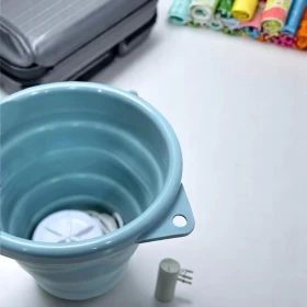 مثالية للمساحات الصغيرة والسفر، تستخدم هذه الغسالة القابلة للطي تقنية التيربو بالموجات فوق الصوتية لتوفير تنظيف فعال وعميق للملابس. مناسبة لغسل الملابس الخفيفة مثل التيشيرتات، الملابس الداخلية، الجوارب، والفساتين. تنتج فقاعات دقيقة تساعد على تفكيك البقع وإزالة الأوساخ بسرعة وكفاءة.