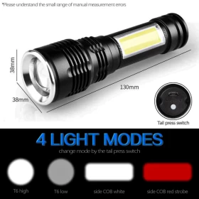 يعمل بتقنية COB LED الحديثة التي توفر إضاءة قوية وواسعة مع استهلاك منخفض للطاقة، مما يجعله مثالياً للإصلاحات المنزلية والتخييم والأنشطة الليلية.