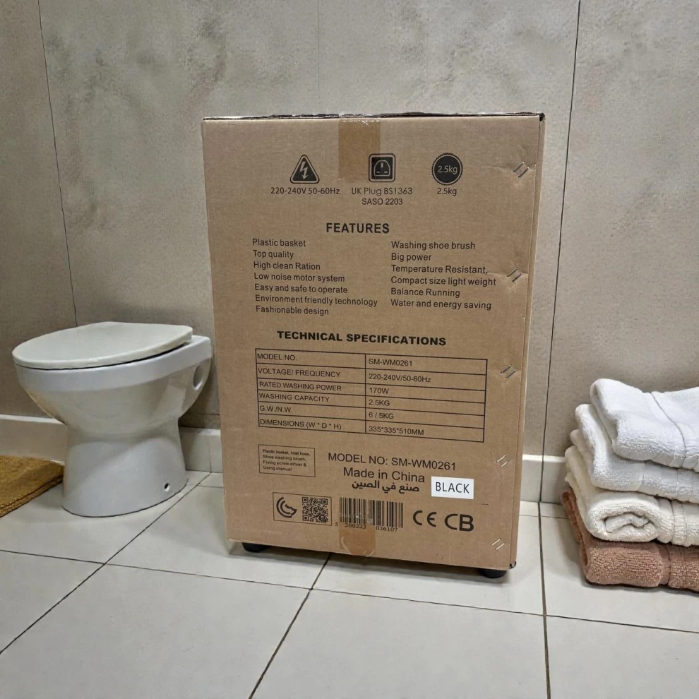 • 🧺 سعة 2.5 كجم – مثالية للأحذية والملابس الخفيفة