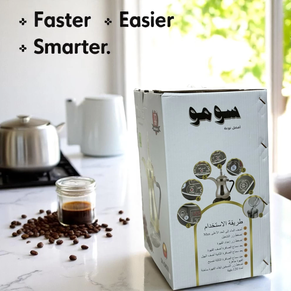 استمتع بتحضير قهوتك العربية المفضلة في المنزل مع صانعة القهوة سومو المصنوعة من الستانلس ستيل عالي الجودة.