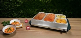 Make your hosting stress-free with this 4-section buffet server and warming tray – the perfect solution for keeping meals fresh, hot, and ready to serve! Whether it’s a family dinner, party, or buffet, this warming station is designed to maintain the ideal serving temperature for hours. It features four removable stainless steel trays with transparent lids, plus an adjustable thermostat and a durable warming plate. Simple, safe, and efficient – ideal for both indoor and outdoor events.