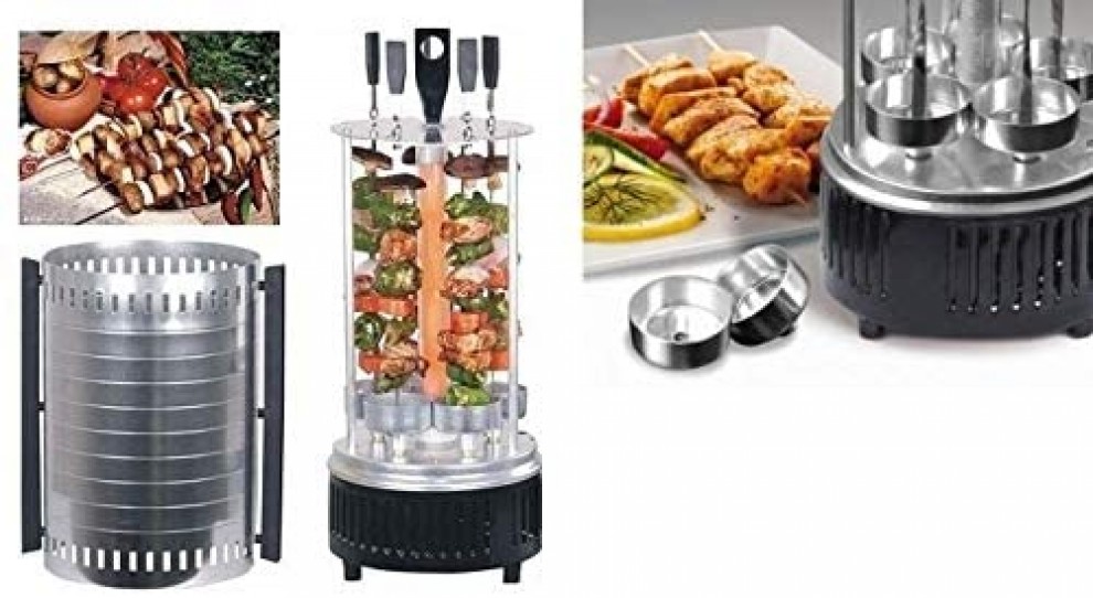 The 1000W grill will grill meat and vegetables into skewers in just a few moments..