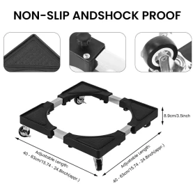 Keep your appliances stable, elevated, and easy to move with the Heavy-Duty Adjustable Appliance Base Stand. Designed for washing machines, refrigerators, and other heavy home appliances, it improves ventilation, prevents moisture damage, and allows for effortless cleaning underneath. Built from PA66 plastic, zinc-coated metal tubes, and rubber wheels, this base combines strength and convenience for everyday use