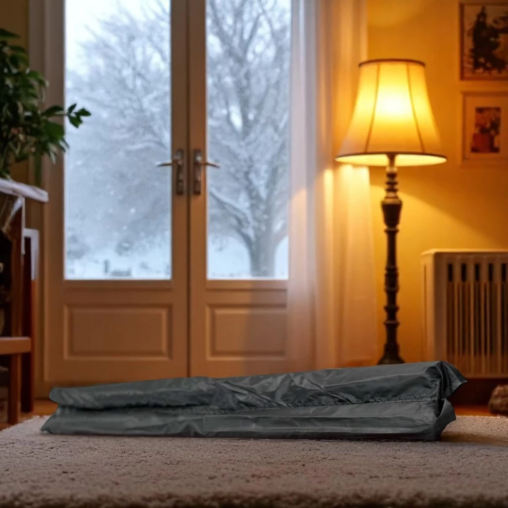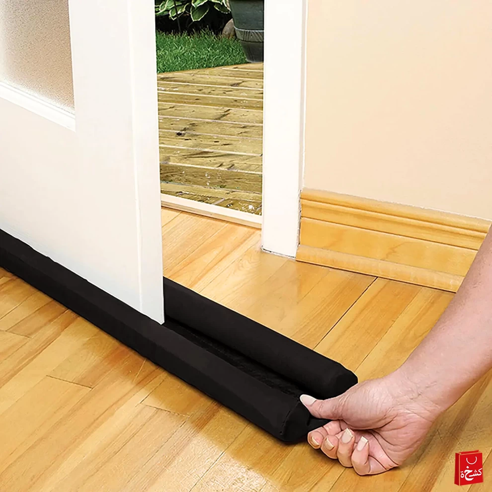 Enjoy year-round comfort and energy savings with the DOOR SHIELD! This double-sided draft stopper is designed to block cold air, heat, noise, and odors from sneaking in under your doors or windows. Made with durable sponge and polyester, it slides effortlessly with your door as it opens and closes. Perfect for creating a more comfortable and quiet home or office environment. 🏠❄️🌬️