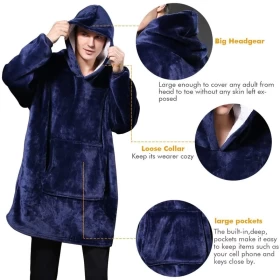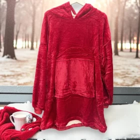 Stay warm, cozy, and stylish with the oversized blanket hoodie, the world’s most comfortable wearable hoodie that doubles as a blanket. Made with soft polyester fleece on the outside and lined with luxurious Sherpa fabric on the inside, it’s perfect for lounging, running errands, or keeping toasty at outdoor events. One size fits all, making it ideal for everyone in the family!