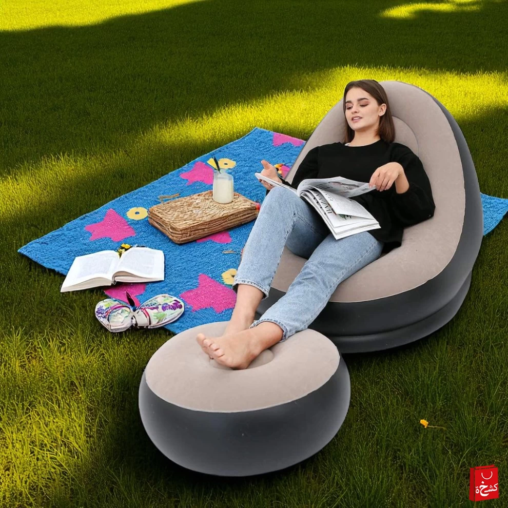 Experience next-level relaxation with this soft and comfortable inflatable lounge chair, designed with an ergonomic backrest and a matching round footstool. Whether you're relaxing indoors or outdoors, this compact, easy-to-inflate sofa will quickly become your go-to spot for comfort and convenience.