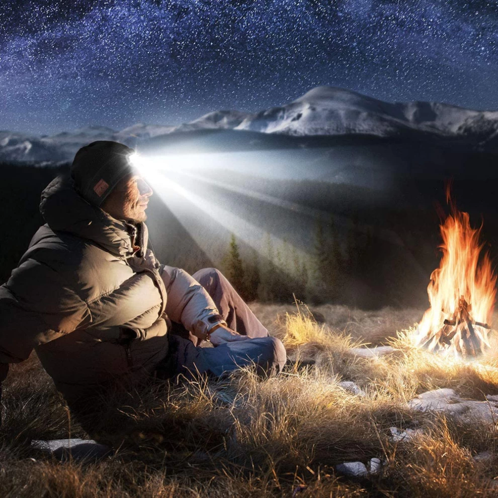 The wireless hat is equipped with 4 high light LEDs, 4 modes for brightness adjustment(medium /high /slow flashing /fast flashing), powerful 200 lumens LED headlamp generates a brilliant area of 40 meters.
