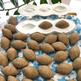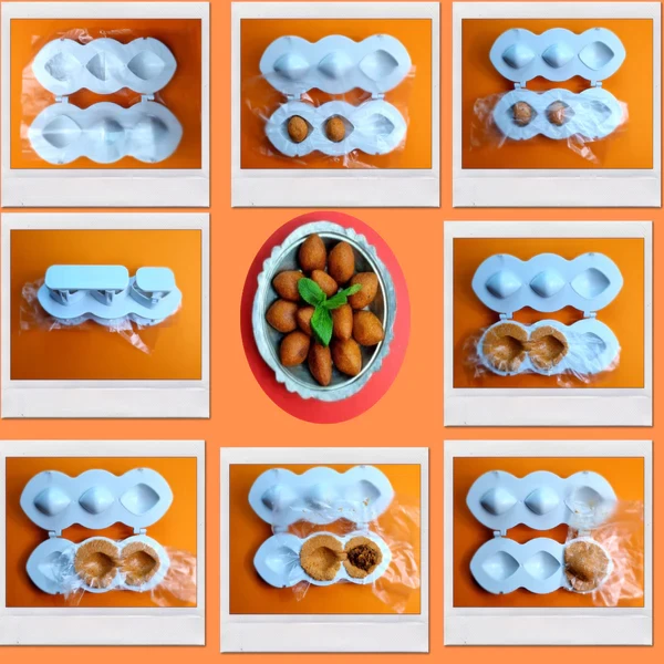 Cut the kibbeh dough into balls according to the desired size, then put them in a nylon bag and put them in the mold.
