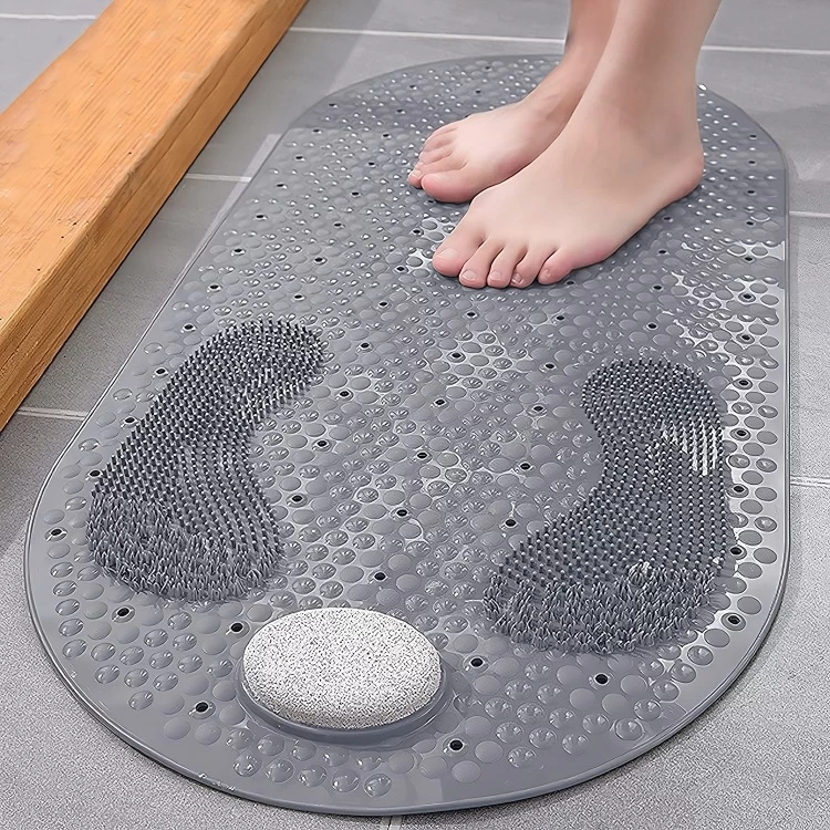 Non-Slip Bathroom Shower Mat with Pumice Foot Scrub