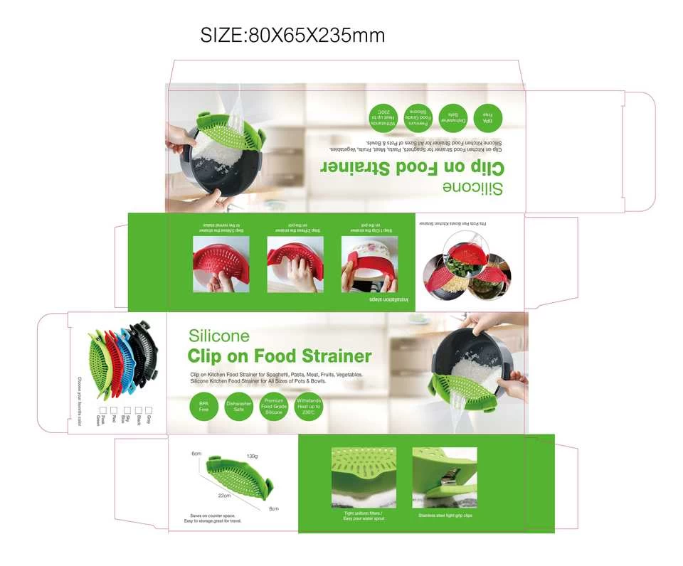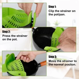 Strain all your favorite foods without dropping odd bits into the sink and splashing boiling water everywhere. The kitchen Strainer is the easiest, most efficient, and most practical pot strainer that clips onto any type of cookware. Simply clip the pasta pot strainer onto any pot and tilt it over the sink or a bowl to strain out the liquid contents. Secure clips will make sure that the strainer doesn’t slip off while you strain the liquid. Use for vegetables, potatoes, eggs, grains, pasta, etc.