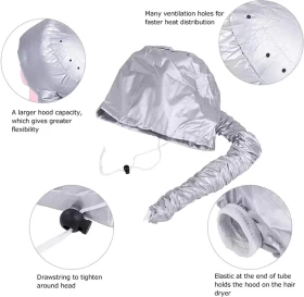 Dry and style your hair evenly with this Bonnet Hood Hair Drying Cap, perfect for deep conditioning, setting curls, or simply drying hair without direct heat. Designed to fit any standard hair dryer nozzle, this cap distributes warm air gently and evenly for salon-like results at home.