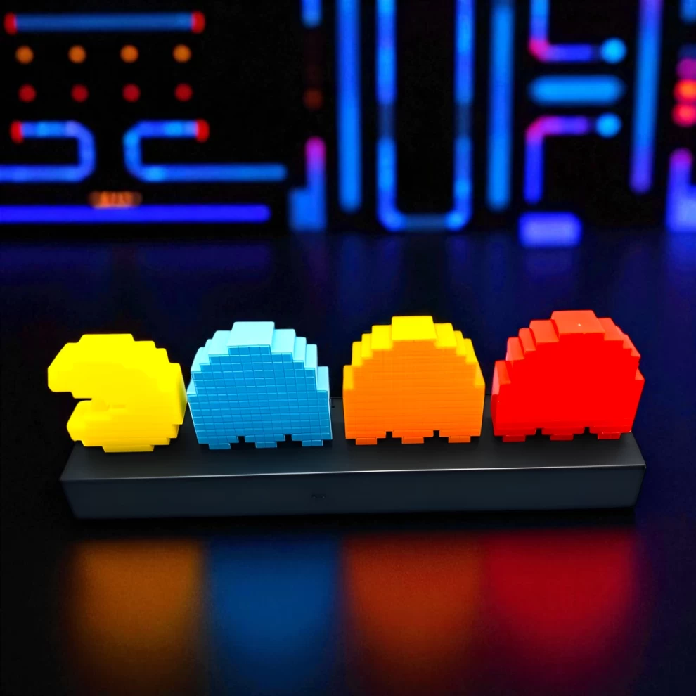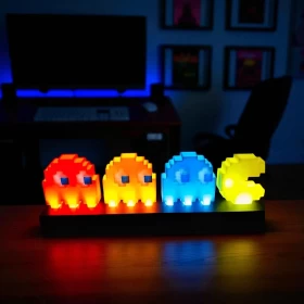 Bring nostalgic charm and vibrant color into your space with the Pac-Man Retro Icon Light — a tribute to the legendary arcade game that defined the ’80s. Whether you’re a longtime gamer, collector, or just love unique decor, this officially licensed nightlight will brighten up your room and your mood! With iconic characters like Inky, Blinky, Pinky & Clyde lighting up in colorful LED glory, it’s a must-have for game rooms, bedrooms, or play areas.
