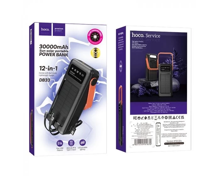 HOCO DB33 Solar Charging Portable Power Bank 30000mAh – Black