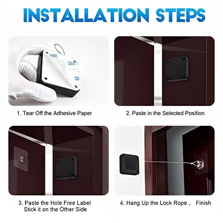 3. 📍 Stick the main unit to the door and the cord anchor to the frame.