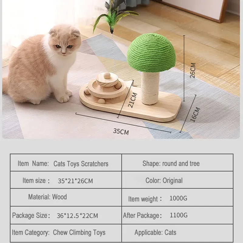 This cat scratcher toy is made of natural sisal rope and wood, non-toxic and cat friendly. The sisal rope is wound by a machine, which is stable and durable, without paper scraps and is not easy to fall apart.