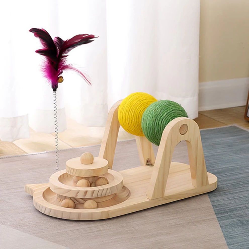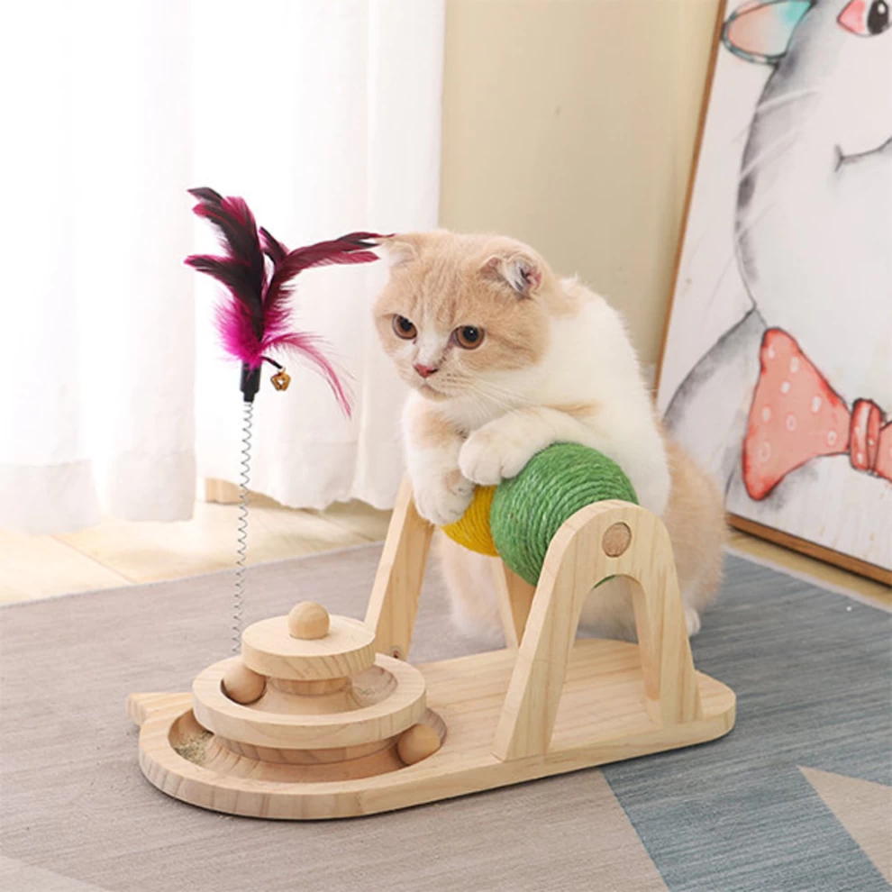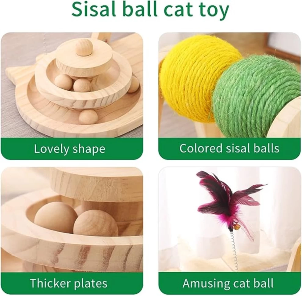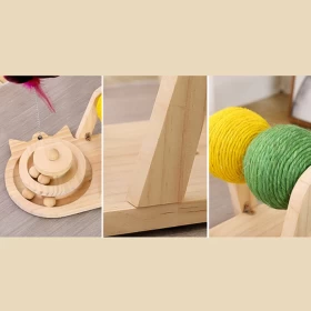 This cat scratcher toy is made of natural sisal rope and wood, non-toxic and cat friendly. The sisal rope is wound by a machine, which is stable and durable, without paper scraps and is not easy to fall apart.