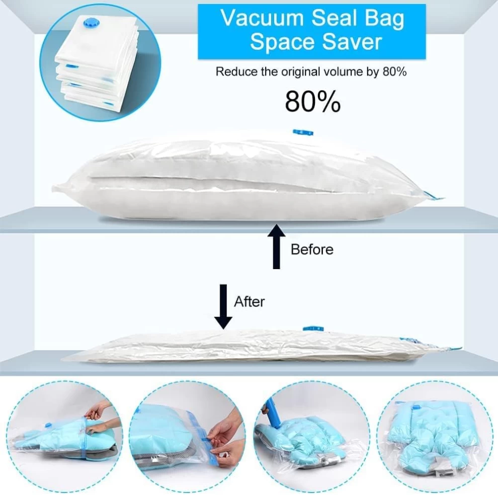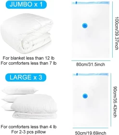 🧳 Jumbo Reusable Vacuum Storage Bags Set – 5 Bags + Hand Pump Included