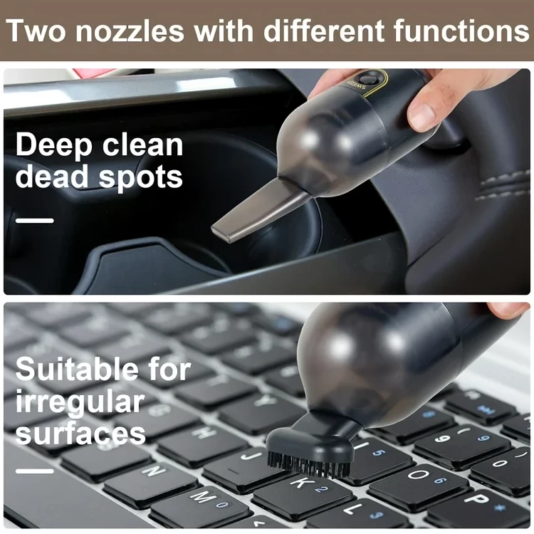 • Strong Suction Power 2200pa concentrated suction power deep into the corner of the desktop, the gap of the keyboard, and the air outlet of the center console in the car so that the dust has nowhere to go