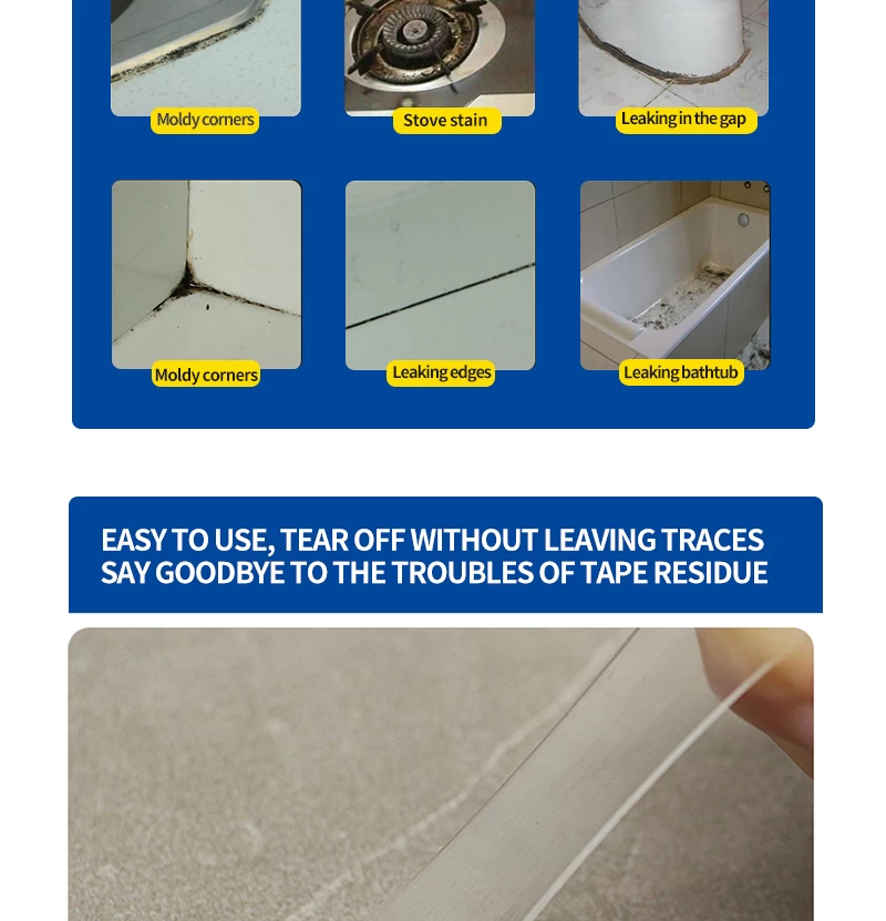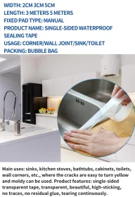 Seal gaps and protect surfaces with this high-quality waterproof sealing tape, designed to provide a long-lasting, clean finish in kitchens, bathrooms, and corners. Made from durable PVC, it’s self-adhesive, water-resistant, oil-proof, and folds at 90° to perfectly seal joints and seams. Whether around sinks, bathtubs, stoves, or toilets, this tape keeps your home neat, clean, and leak-free.