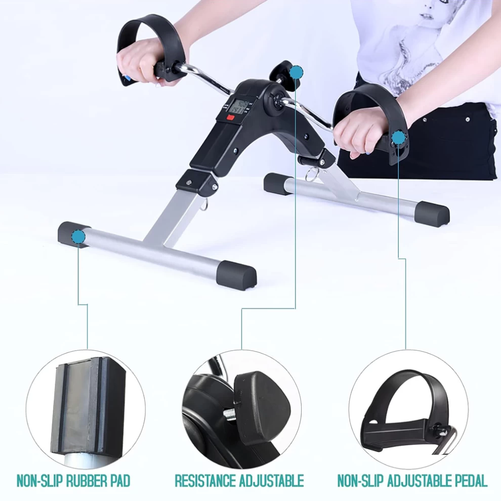 3️⃣ Sit comfortably and start pedaling with either your feet (seated) or hands (for arm exercise).