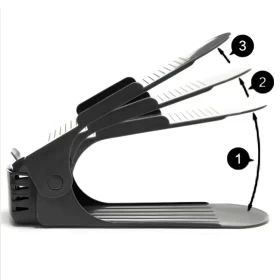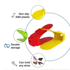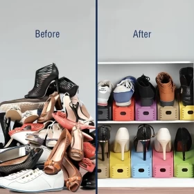 Maximize your closet or shelf space with this smart double-layer shoe organizer. Keep your shoes neat, accessible, and stylishly arranged!