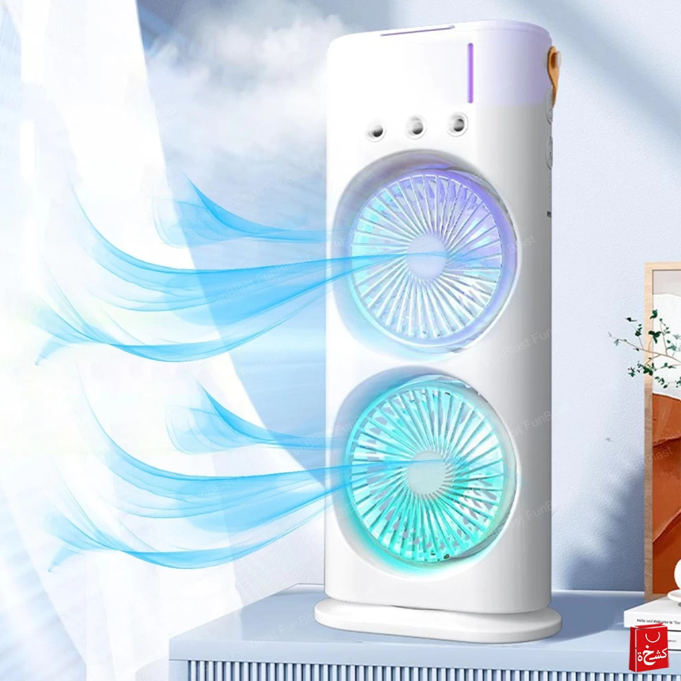 🌀 Rechargeable Mini Desktop Table Cooling Fan – Double Fan with Water-Cooling & LED Light