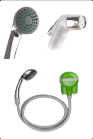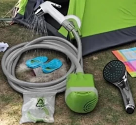 Includes: Shower Bag, Pressure Foot Pump, Hose, Nozzle