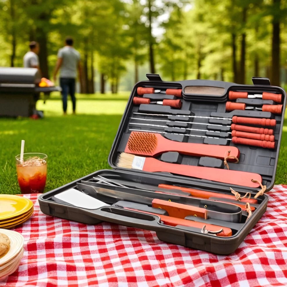Grill like a pro anywhere, anytime! This 18-piece barbecue tool set is your all-in-one companion — perfect for backyard feasts, family picnics, camping trips, or beach cookouts. With a complete collection of essential tools stored in a compact, easy-to-carry case, you’ll always have the right utensil ready for every barbecue session.