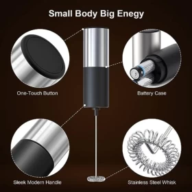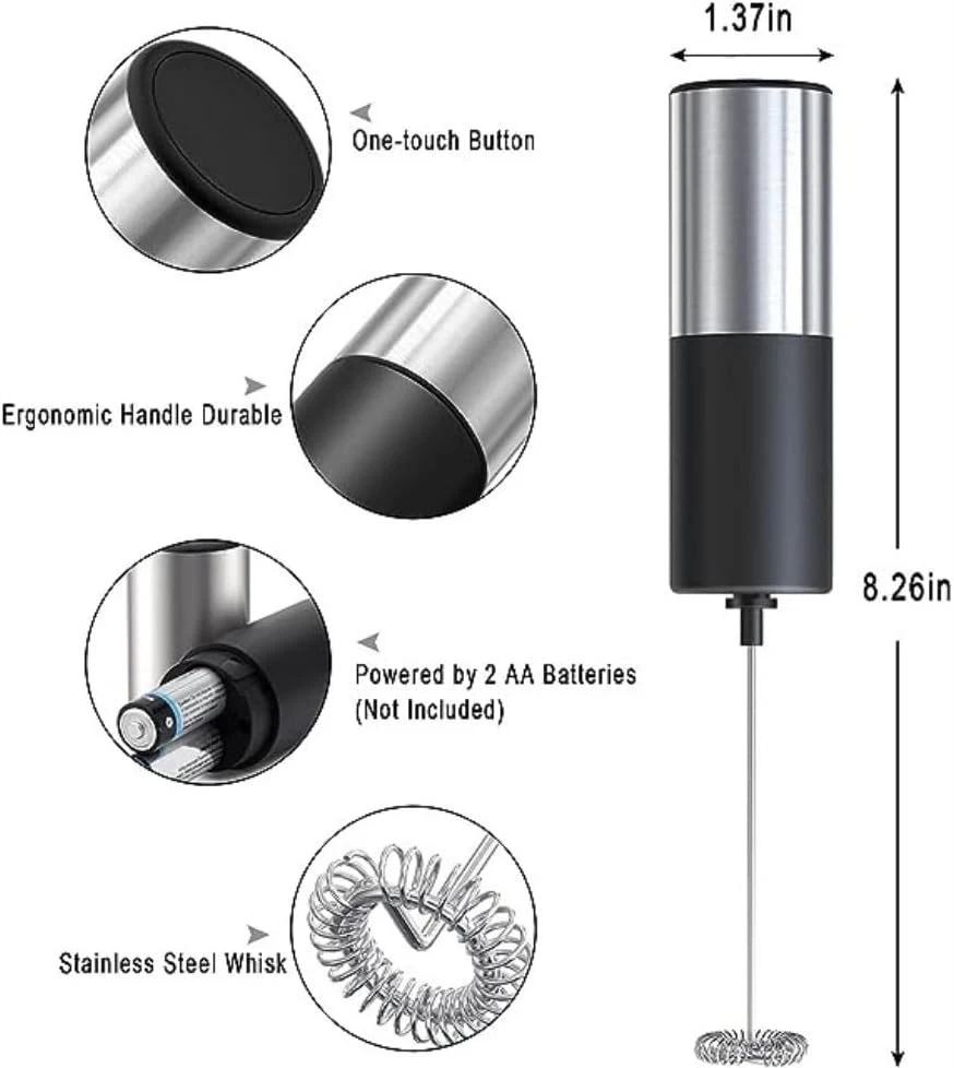 • Durable and safety : It is durable for thousands of working cycles. The milk frother operated handheld coffee is made of stainless steel, Food grade stainless steel whisk, The metal material design keeps you clean kichen and also easily to clean .