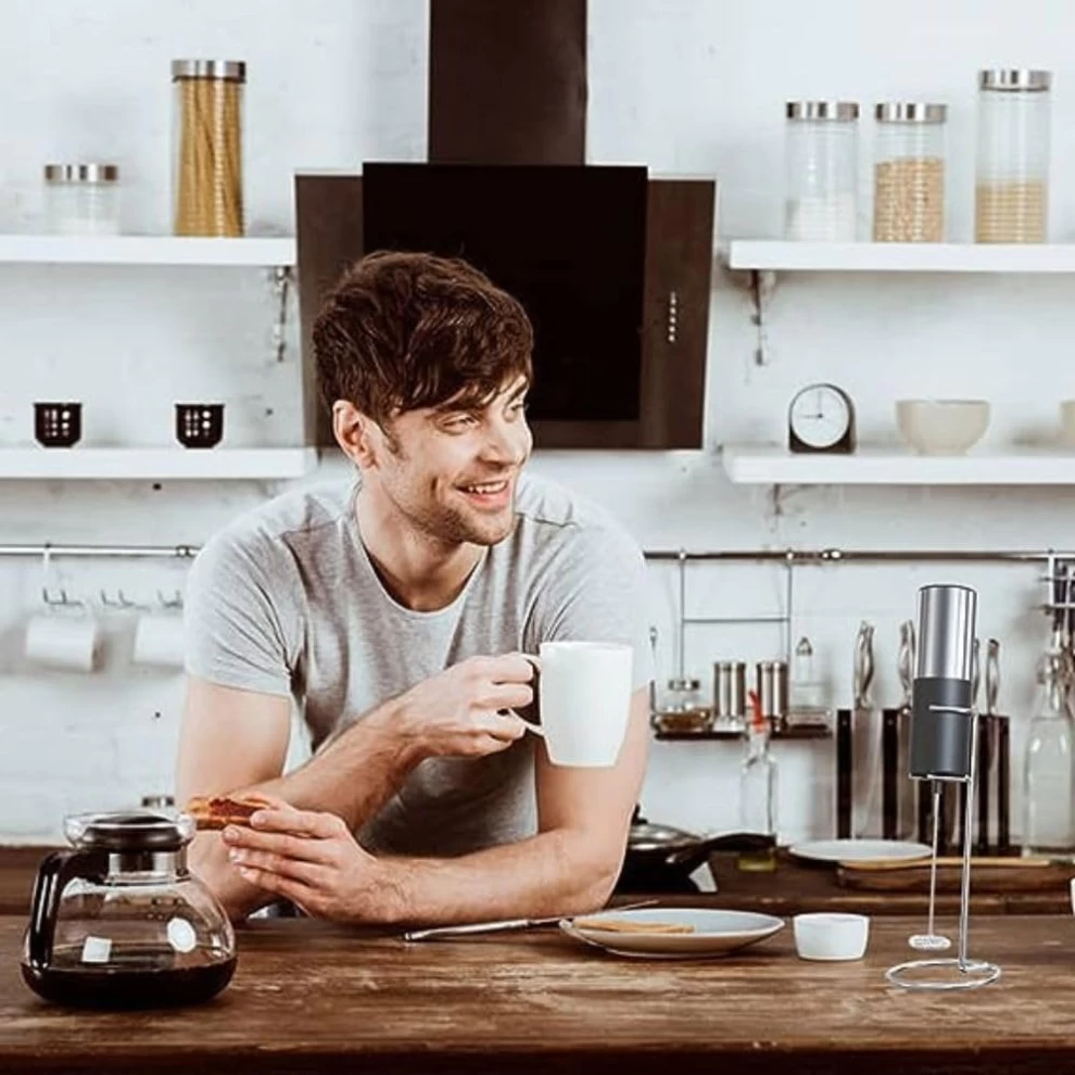 • Easily to make rich and creamy milk froth: Powerful engine for high-speed whisking. As a professional frother for coffee, latte, milk, cappuccino, macchiato, hot chocolate, milkshakes, matcha tea, mixed drinks, and even for whisking eggs and sauces. You will have your favorite electric whisk drink mixer or food maker.