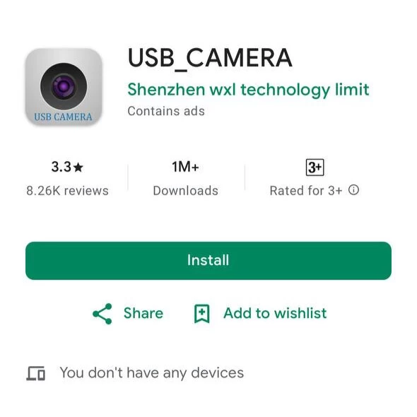 Go to Google Play Store and search for “USB Camera” (App name: USB_Camera) – it’s free!
