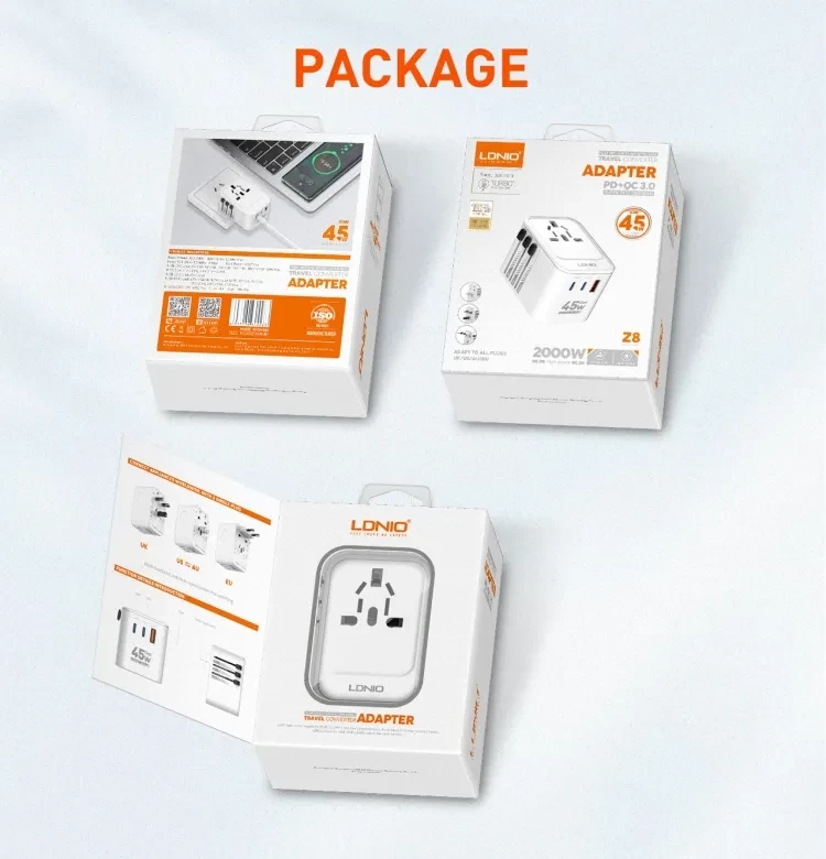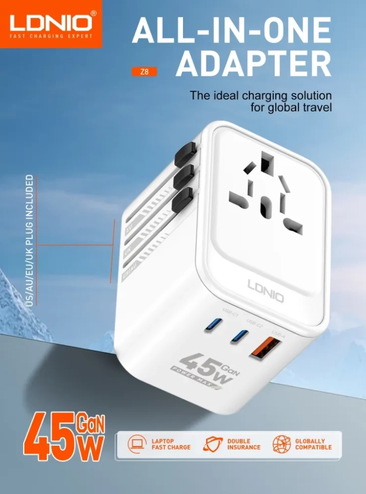 LDNIO Universal Travel Adapter with USB C and USB A 3 Port Z8 -2000WATT