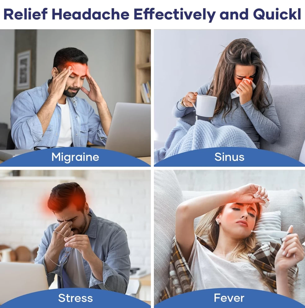 • 🌀 360° Full Head Coverage – Surrounds the forehead, temples, eyes, and back of head for full relief