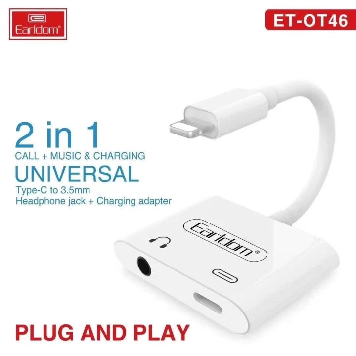 • Introduction of 2in1 Earldom Adapter Cable ET-OT46 Lightning to 1 Lightning Port & 1 3.5mm Port With Microphone, Genuine