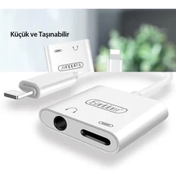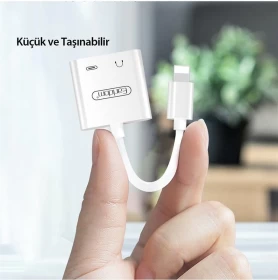 • Is a smart conversion cable, integrating both 3.5mm pins and Lightning charging pins