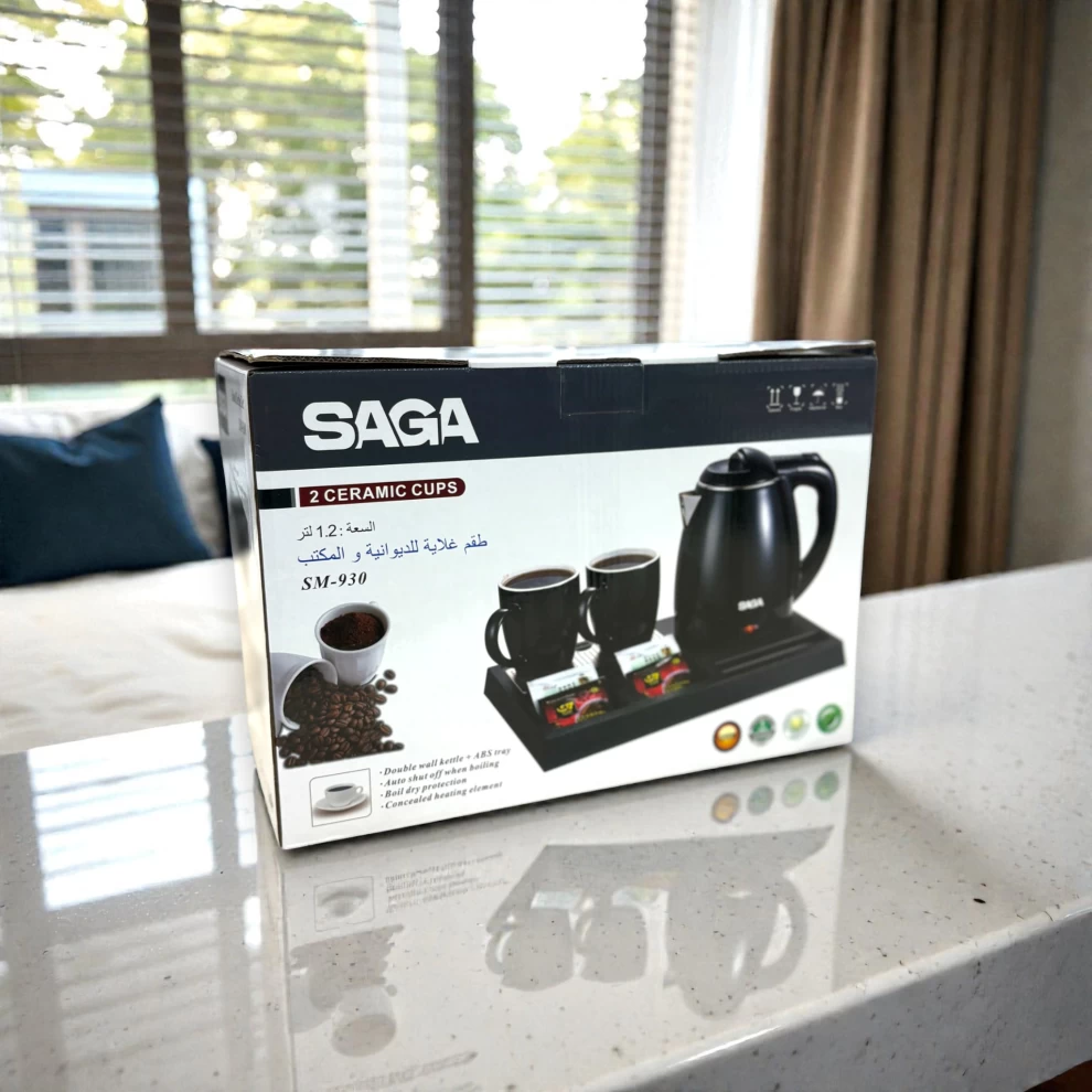 🍵 SAGA Electric Hotel Kettle With Ceramic Cups Black -1.2L