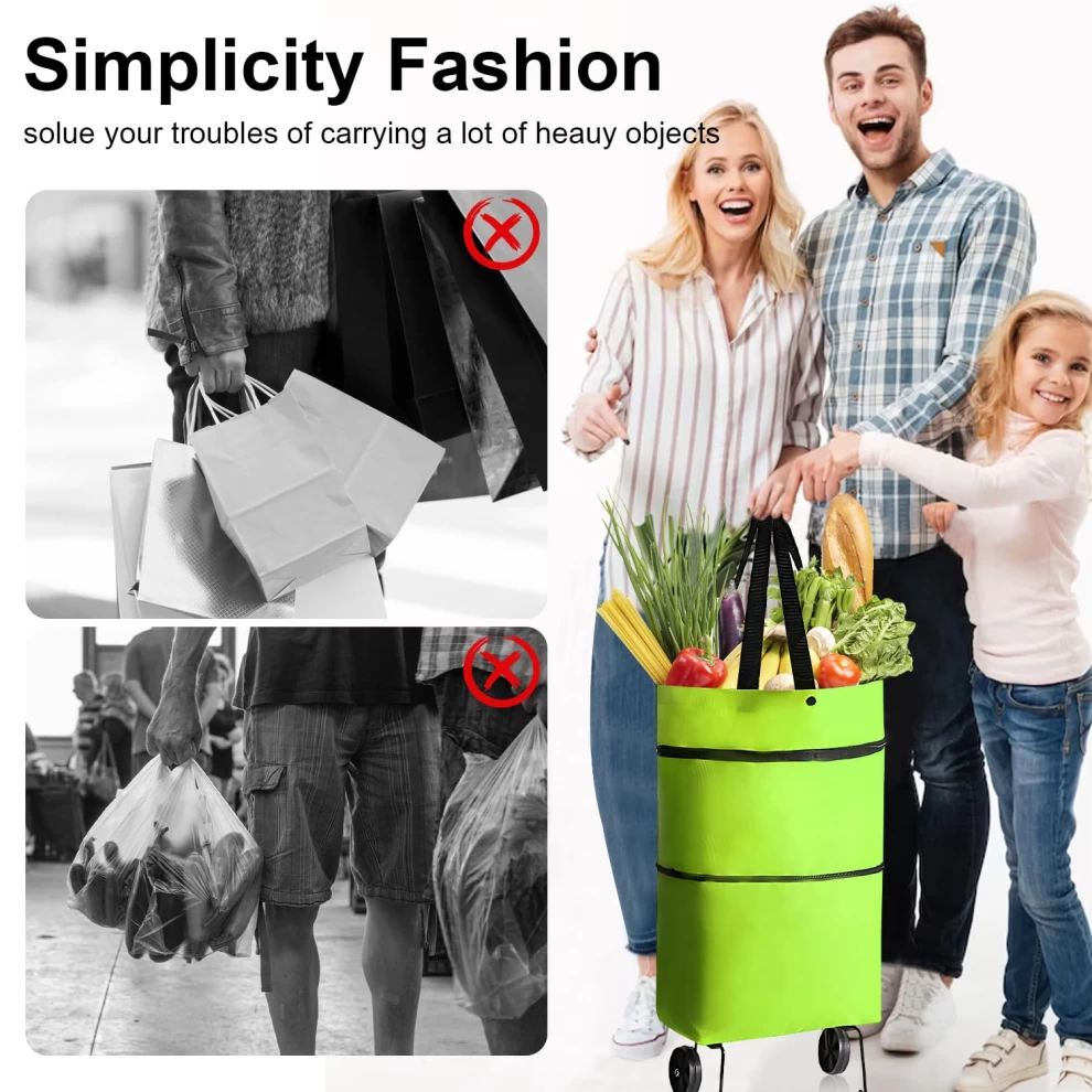 Fold, roll, and shop in style! A versatile, space-saving shopping cart perfect for groceries, laundry, and daily errands.