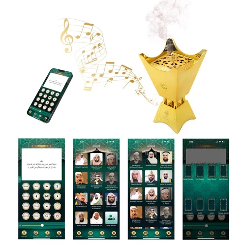 • Dual-Functionality: Combines a traditional electric bakhoor burner with a modern Bluetooth Quran speaker, allowing you to enjoy both fragrance and spiritual recitations.