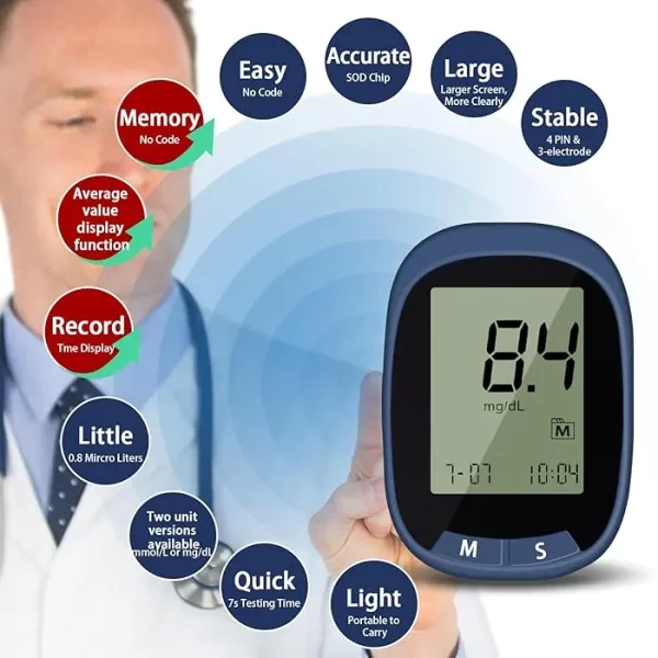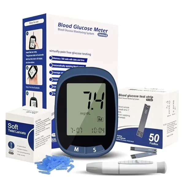 Monitor your blood glucose levels with precision using this Fast & Accurate Blood Glucose Monitor 🩸. Perfect for daily testing, it provides quick results ⏱️ and comes with 50 test strips for continuous monitoring 📊. Keep track of your health and stay in control with this easy-to-use and reliable device 🏥. Ideal for individuals with diabetes or anyone needing regular glucose testing. 🌟