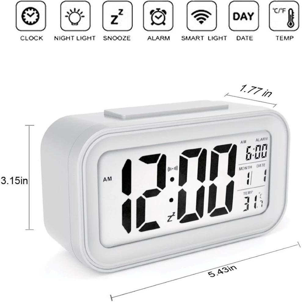 Wake up in style with this modern digital alarm clock! 🚀🕰️ Featuring smart light technology, temperature display, and a night light, this compact clock is perfect for your bedside, office, or travel needs. Easy-to-read LCD display with multiple functions makes it a must-have!