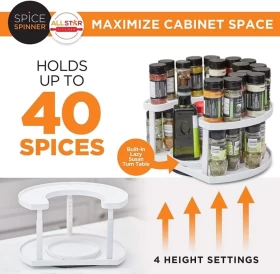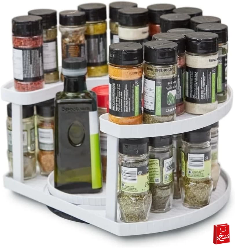 This space-saving organizer is designed to maximize your kitchen, pantry, or countertop space while keeping your bottles and condiments neatly arranged. With its double rotating rack, you can easily access items without hassle.