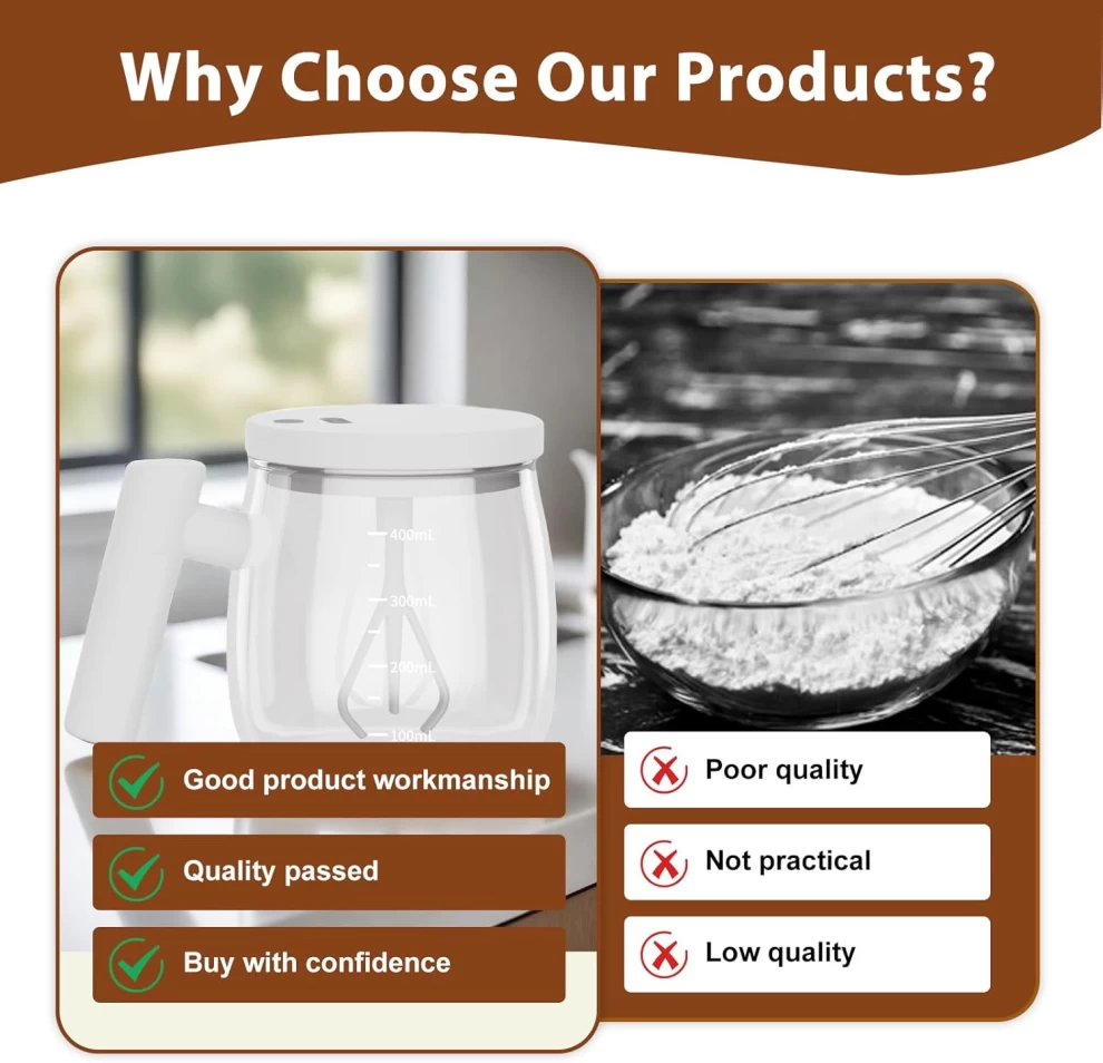 ✅ Self-Stirring Technology – Automatically stirs your drinks 🔄☕