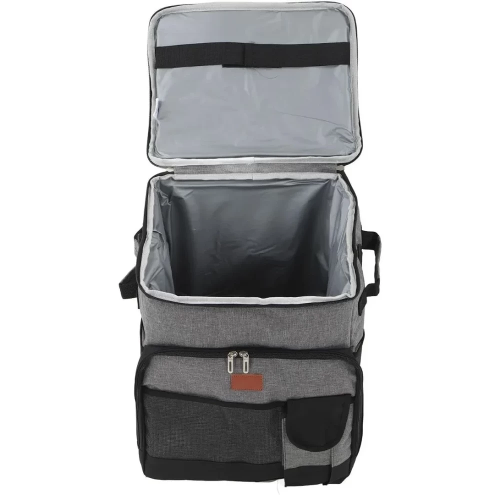 1️⃣ Open the main zipper and load your food, drinks, or groceries 🥪🍹
